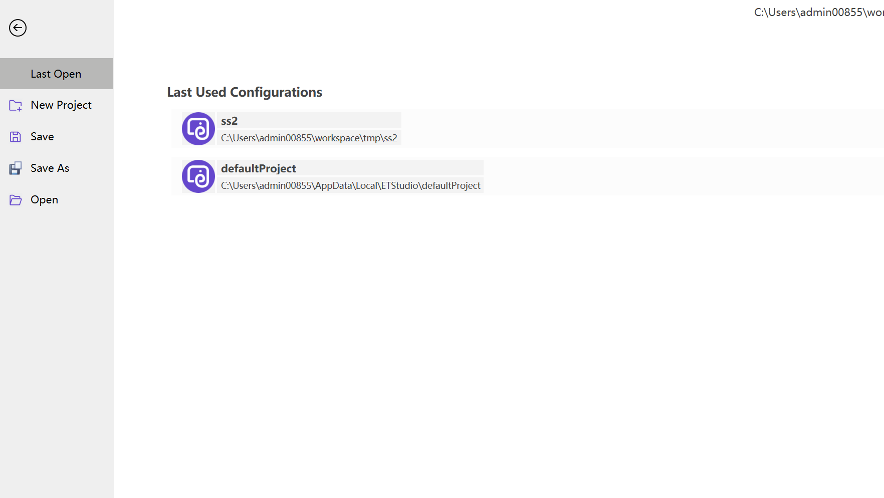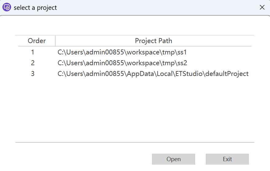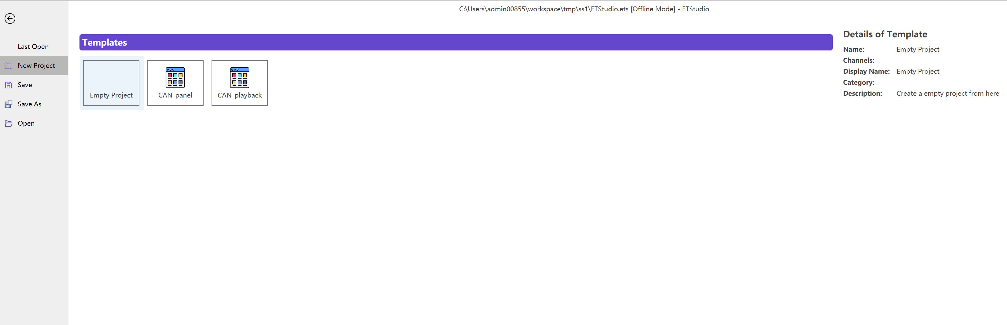 Project is the basic unit to store the specific configuration of all modules of ETStudio software. Each time you launch the software, it will load the default project or the project you opened last time. you can also load specific project you saved previously.