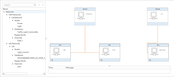 Readers can add a Lin channel and modify the hardware properties to available hardware through the Device→Channel Assignment→Channel Config in the main menu. After adding, right-click on the Lin Network position in the system view on the right side of the Simulation Setup window to quickly add a network called LIN, and you can see an independent LIN network without any nodes on the network attempt.