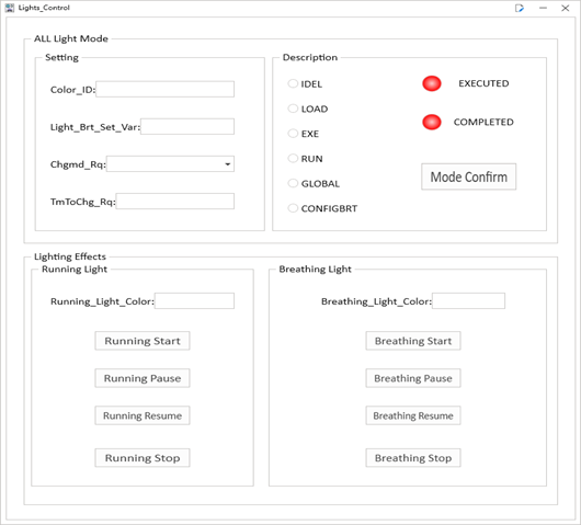 After completing the above configuration, readers can connect the corresponding devices, run the project in ETStudio, and switch the control mode of the light bar in the car according to different needs to observe the corresponding functional effects. It can also display the function effect according to the preset running lamp and breathing lamp control buttons.