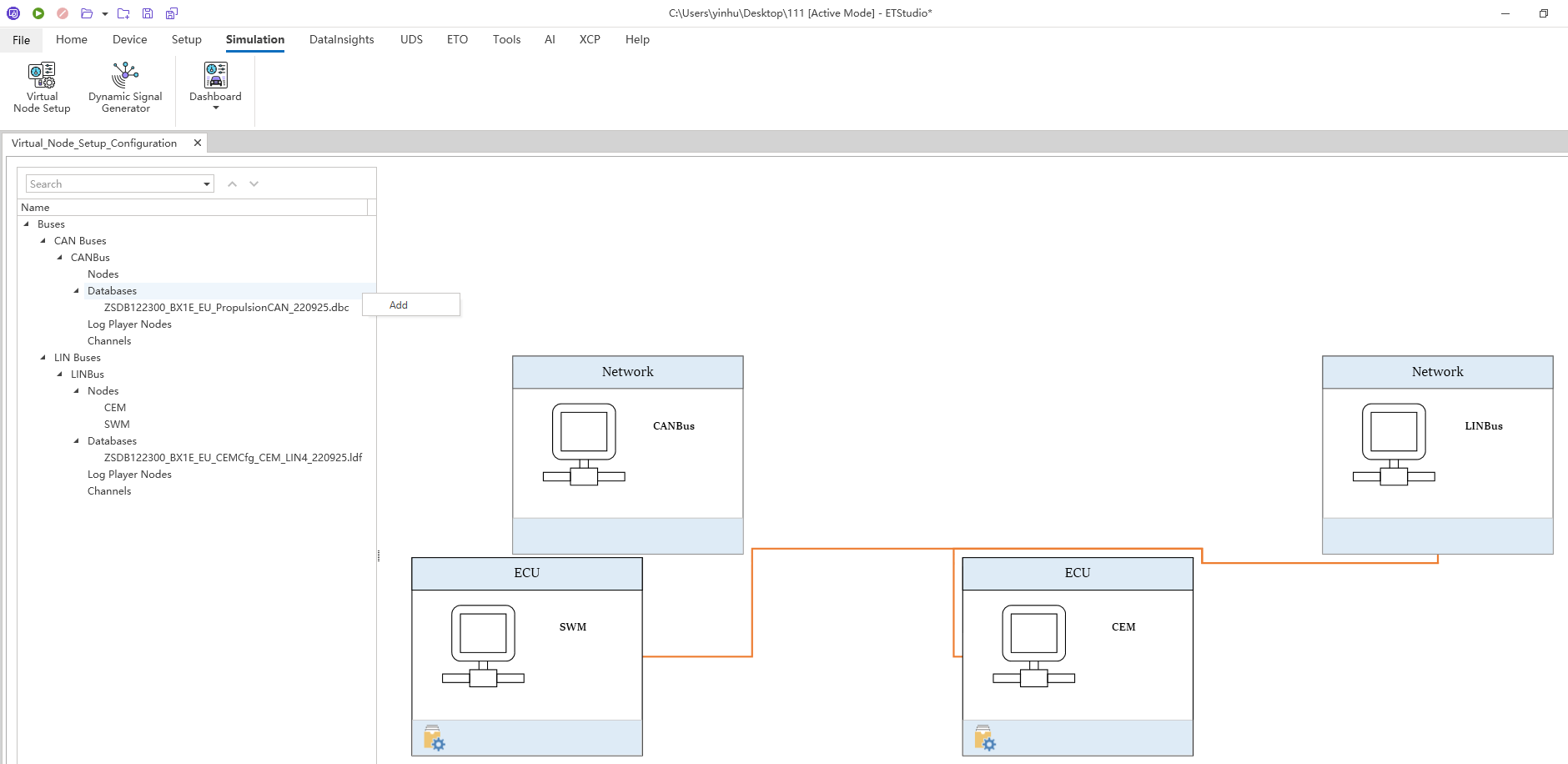 Click Add and select the dbc file, and the same applies to the ldf file below.