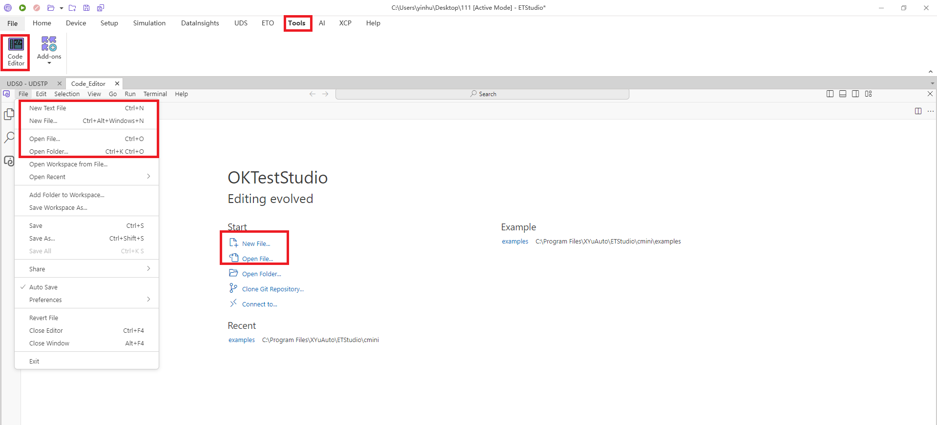 You can click the Code Editor icon under the Tools menu to open the Code Editor interface.