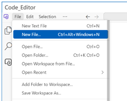 Under the File menu, click the New File button and enter a mini program name such as test.cpp or test.c