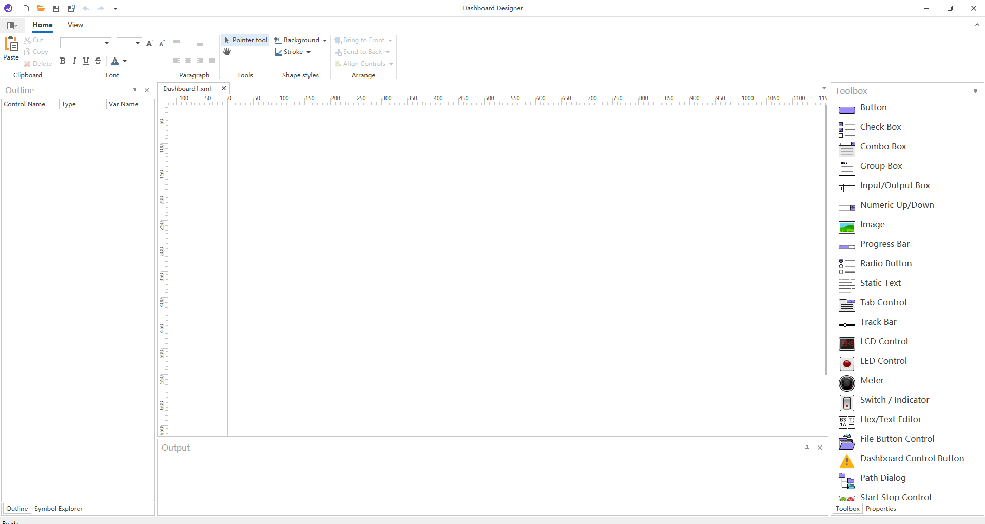 The Output Window is used to display error or warning messages for controls in the current edit Dashboard.