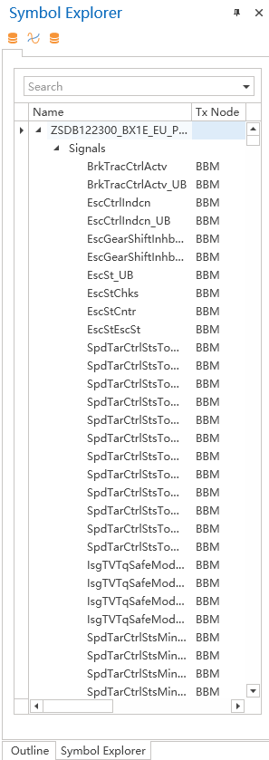 The Symbol Explorer displays all currently available objects (such as signals, system variables, and environment variables), as shown in Figure. Users can drag and drop with the left mouse button to associate it with a control in the currently edited Dashboard.