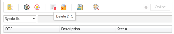 Operation: Select a DTC and click Delete to remove it from the ECU.