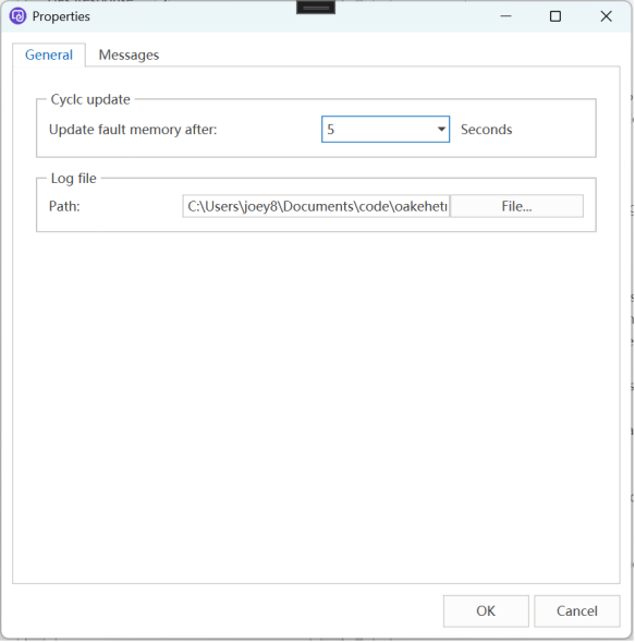- Function: Save DTC records to local files. Default log path: ETStudio installation directory. Custom paths can be configured through the Properties page.