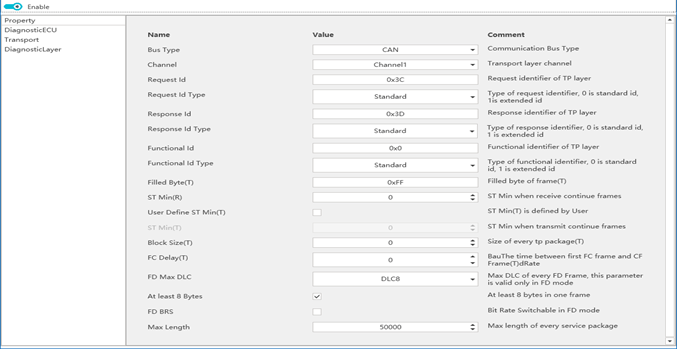 ST min: The shortest reception interval. When ETStudio's diagnostic module acts as the receiver, it supports receiving consecutive frame messages at the minimum interval between diagnostic frames. This parameter is the response customer to the diagnosis. Setting it to 0 means that it supports receiving at the shortest possible interval.