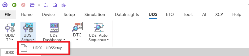 - Specifically for switching the current session state of the ECU. Click on menu UDS --> UDS Setup.