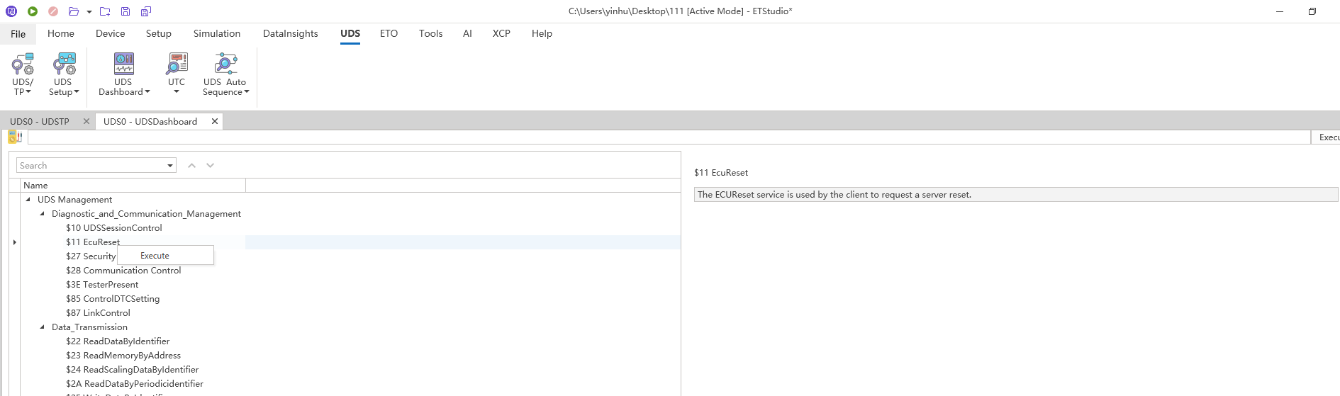 To take full advantage of ETStudio's diagnostic functions, you need to import the Diagnostic Description into your ETStudio simulation project. ETStudio often refers to diagnostic criteria documents as "diagnostic instructions," which is also used here to avoid confusion. For simpler diagnostic instructions, users can use ETStudio's built-in "DiagnosticsISOTP".