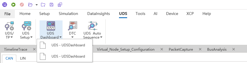 - Specifically for switching the current session state of the ECU. Click on menu UDS --> UDS Setup.