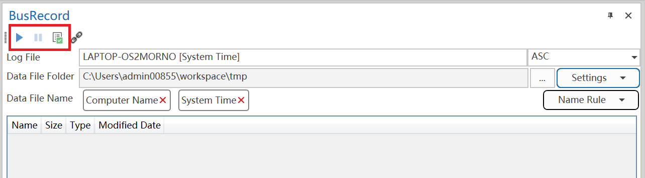 您可以通过工具栏按钮控制总线记录: