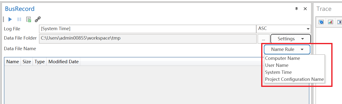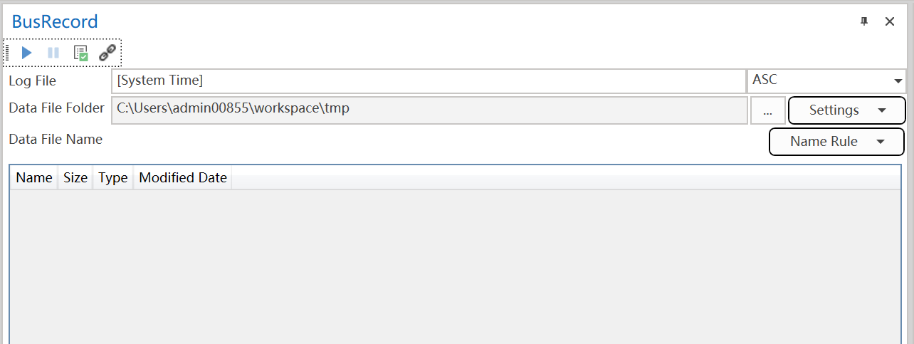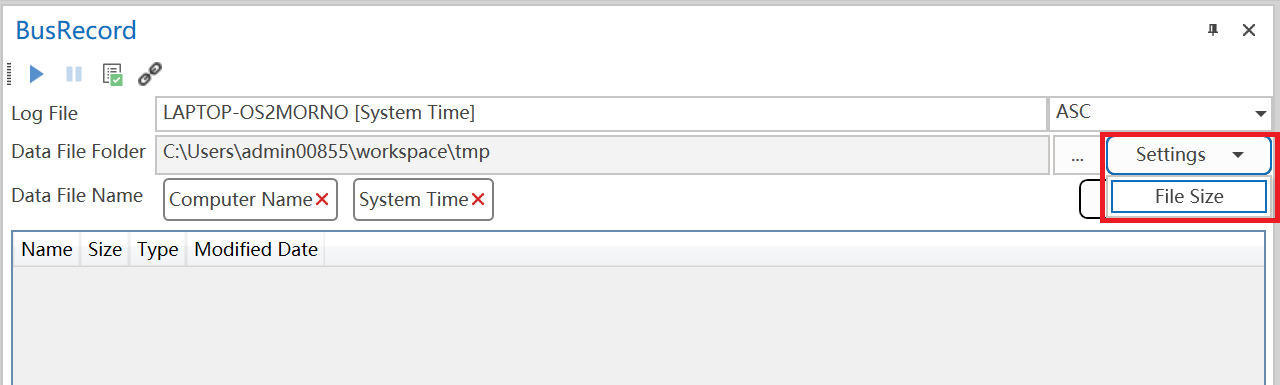 总线记录页面为您提供配置总线记录属性的功能,包括指定总线记录日志文件名和数据文件夹、文件大小限制等。