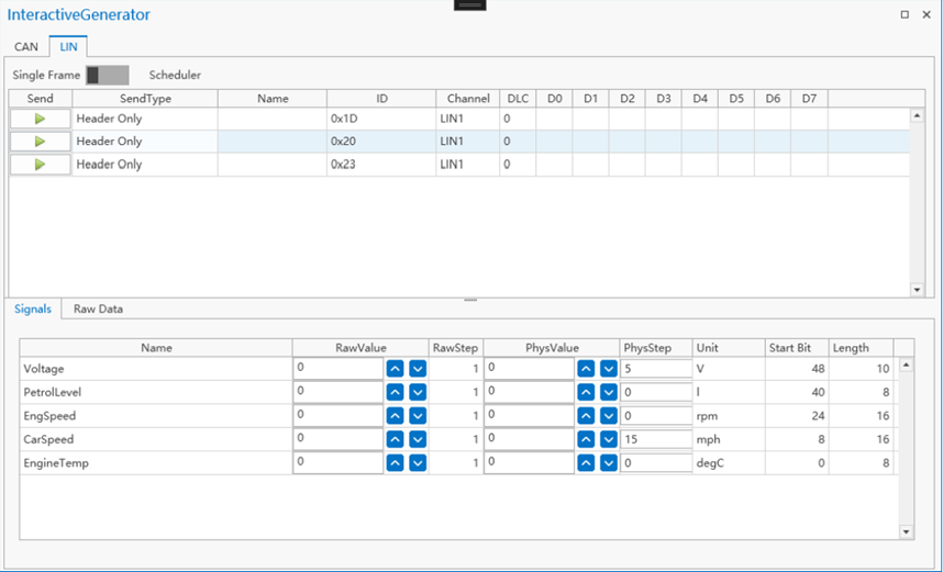 - Send:点击可发送一条 LIN 消息。