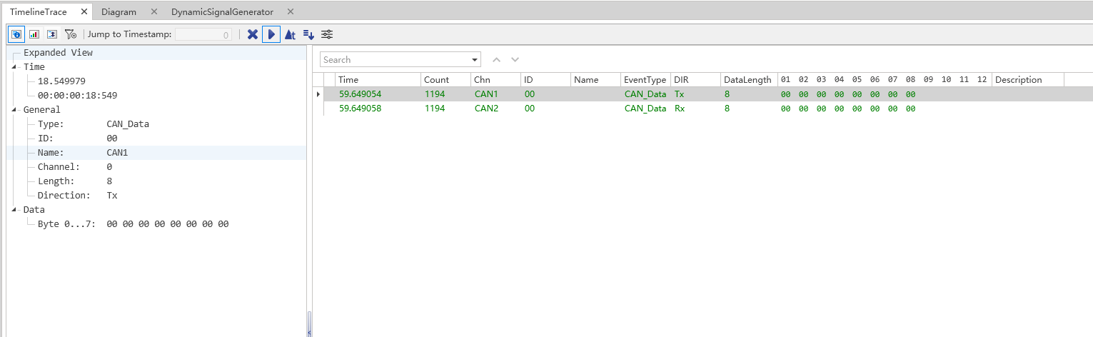 - 诊断过滤项:用于在 Timeline Trace 窗口中过滤诊断相关帧;若未配置诊断功能,该按钮将被禁用。