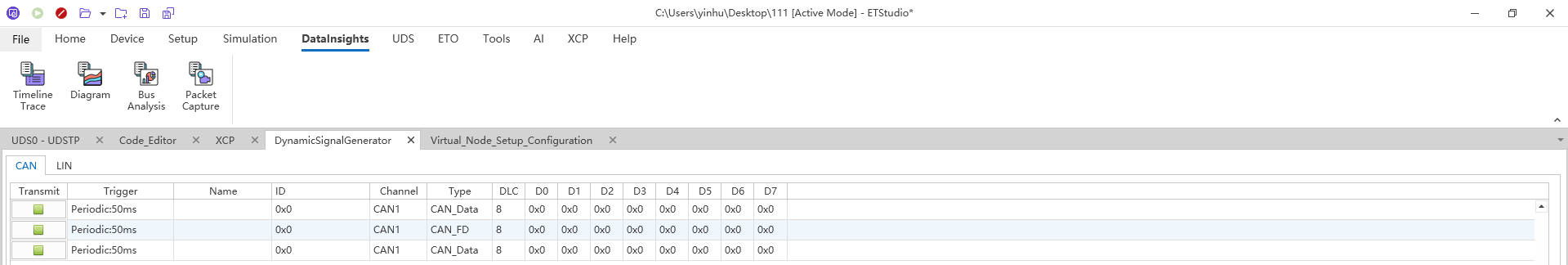 ETStudio 提供两种仿真模式:Active(实时)与 Inactive(离线),可在 Home 功能区切换。