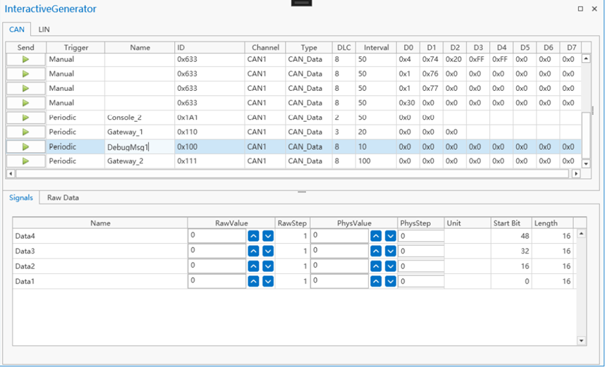 - Raw Value:当前选中信号的原始值编辑器,用于修改原始值而不影响物理值。