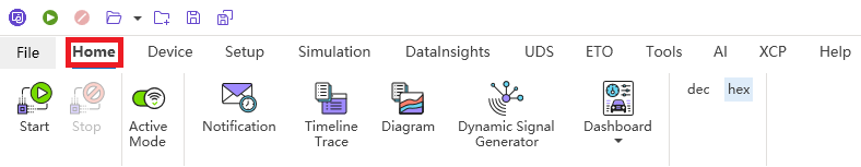 | Active/Inactivate Mode:活动模式表示基于真实硬件连接或仿真模式进行测量;非活动模式使用日志文件(例如 BLF、ASC、MF4)中的记录值 | |