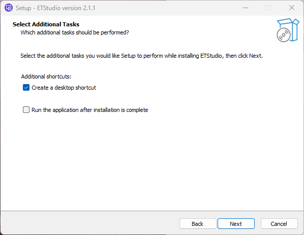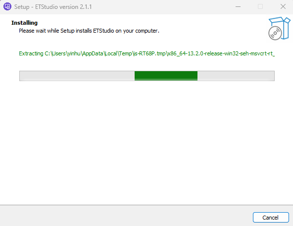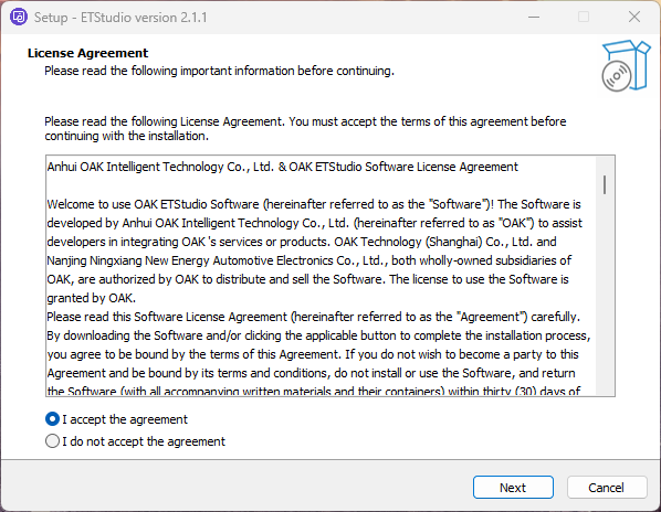 例如安装版本 2.1.1(示例名 ETStudio202511102126),运行安装程序 ETStudioInstall_v2.1.1_202511102126.exe 开始安装。选择合适的语言后点击确认。