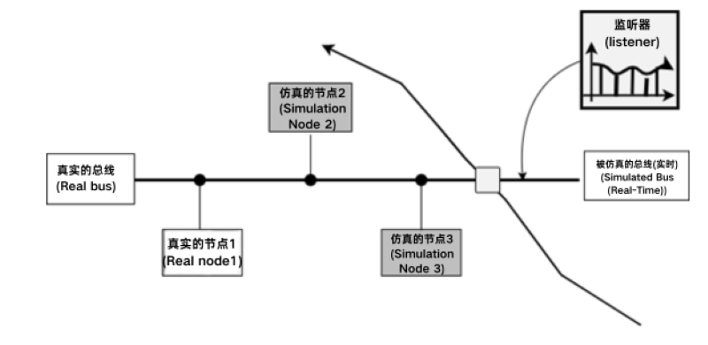 在第一阶段之后,用户可获得整个网络的系统功能模型。此时,用户可以将仿真系统中的相应仿真节点替换为实际开发的 ECU 节点,使用总线接口与 ETStudio 的其余节点连接,以测试自有节点的通信及错误处理等功能。因此,项目团队常常采用剩余总线仿真的方式,使得各供应商的节点能并行开发,互不影响。下图为 ETStudio 中部分节点被真实节点替换并与仿真节点并存的网络系统示意图。